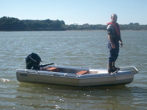 The 3.4m Aluminium Pontoon Dinghy is as rugged as its 4.1m counterpart, but light enough to throw onto a car trailer! Ideal for a tender vessel, white baiting, fishing, hunting or dinghy for the kids!